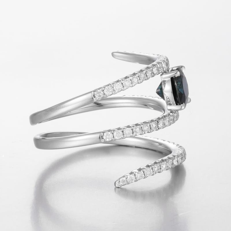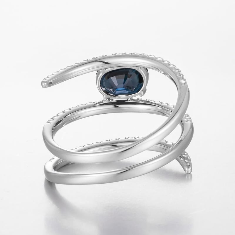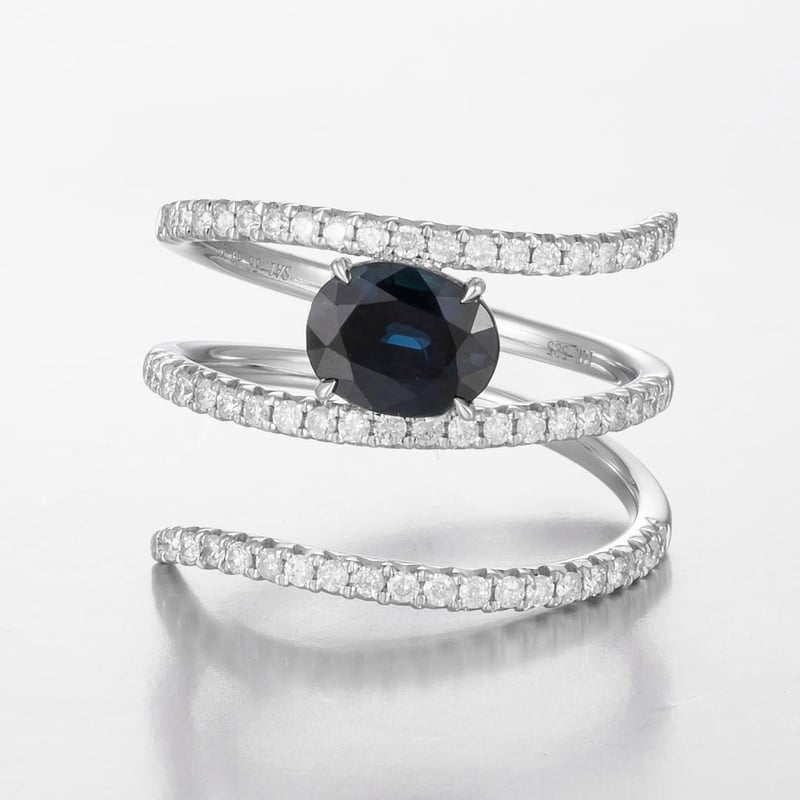 14CT WHITE GOLD AUSTRALIAN SAPPHIRE AND DIAMOND SPIRAL DRESS RING Featuring Centre, One Oval Cut, Deep Blue/Black Australian Sapphire (1.56Ct, Heavily Included), Claw Set, With 63 Round Brilliant Cut Diamonds (0.49Ct Tdw, F-G Colour, Vs2 Clarity), Pip Claw Set. Ring Size O. Valuations Provided by an Independent Third-Party Professional Not Directly Associated With Lloyds Auctions at AUD $19,000This valuation has been conducted by an independent third-party professional. The valuation amount is an assessment by the issuing valuer and does not reflect the auction value of the item. Any inquiries regarding the valuation should be directed to the issuing valuer (refer to contact details on the certificate), as Lloyds Auctions has no affiliation or influence over the valuation, the valuer, or the stated amount. Condition: Good - Refer Images 0586334+1685