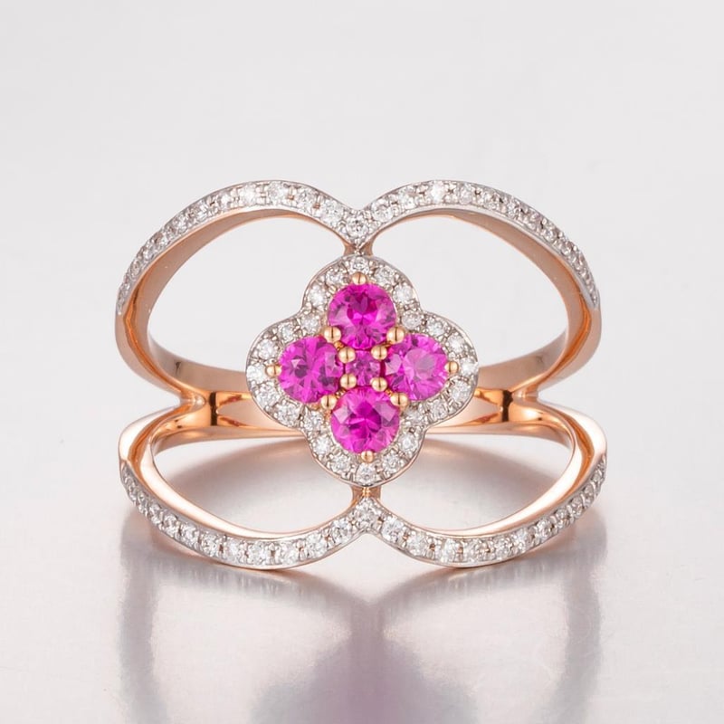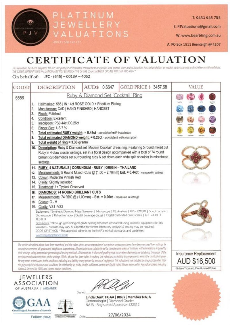 14CT ROSE GOLD RUBY AND DIAMOND DRESS RING