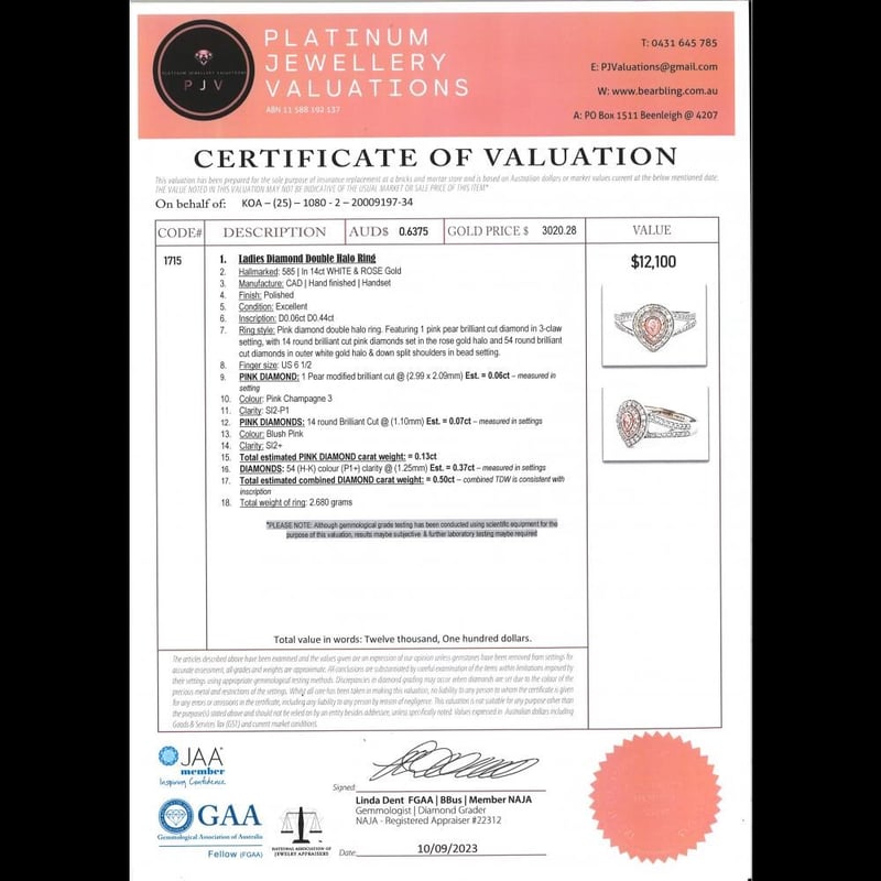 This valuation has been conducted by an independent third-party professional. The valuation amount is an assessment by the issuing valuer and does not reflect the auction value of the item.