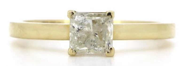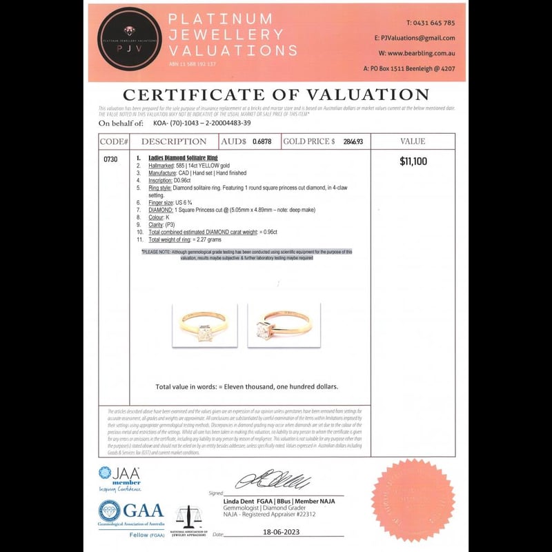The Centre Features, One Square Princess Cut, Diamond (0.96Ct, K Colour, P3 Clarity), 4 Claw Set.