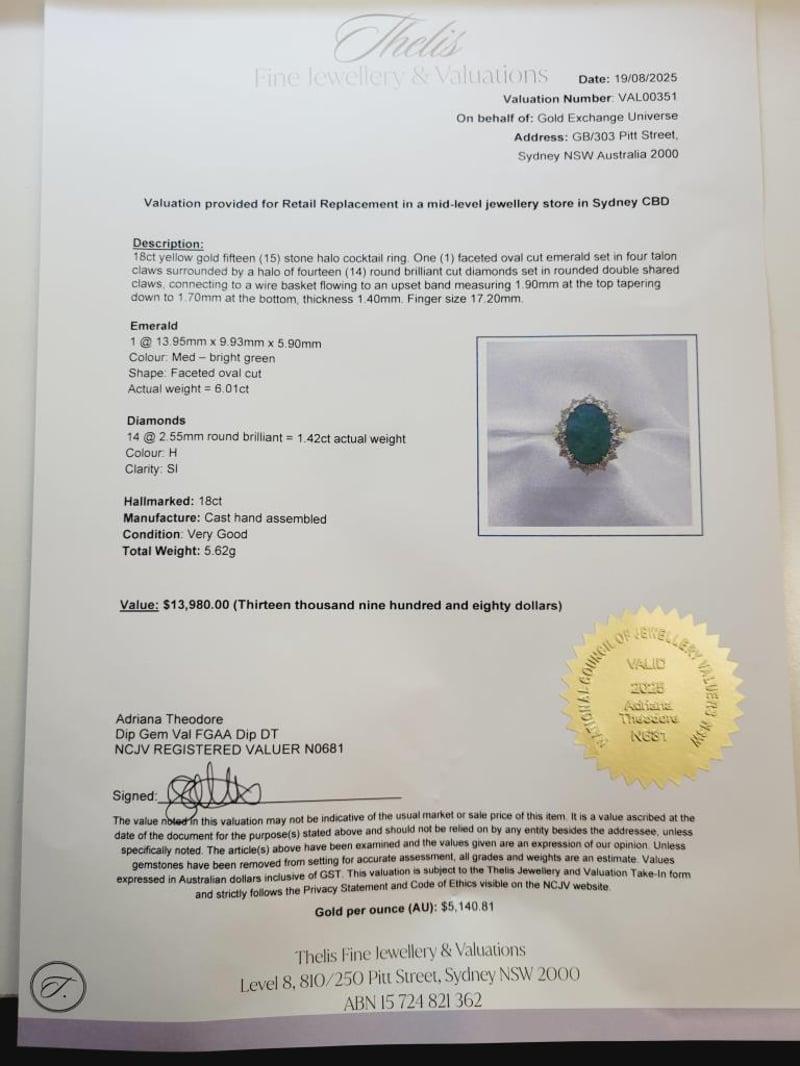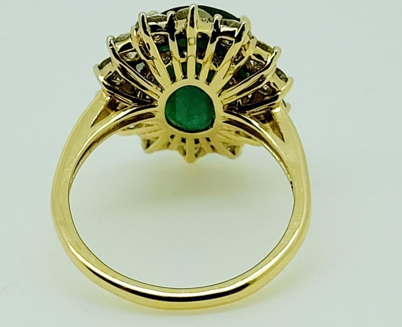 18CT YELLOW GOLD EMERALD AND DIAMOND RING
