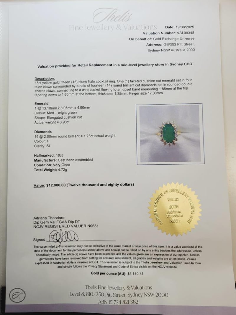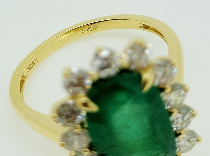 18CT YELLOW GOLD EMERALD AND DIAMOND RING