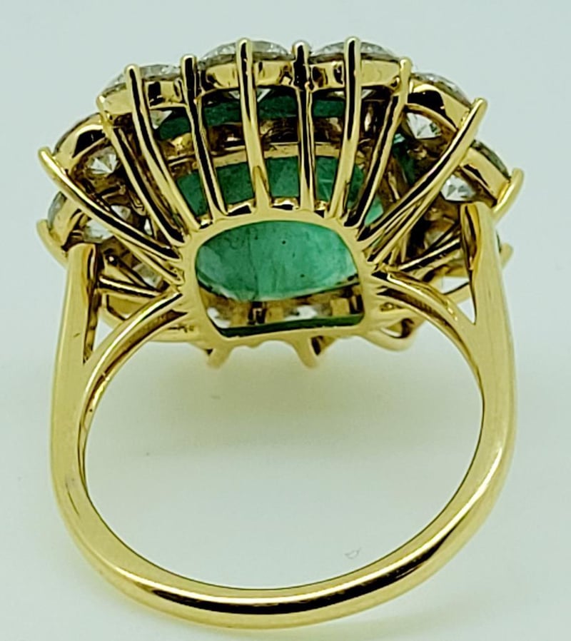 18CT YELLOW GOLD EMERALD AND DIAMOND RING
