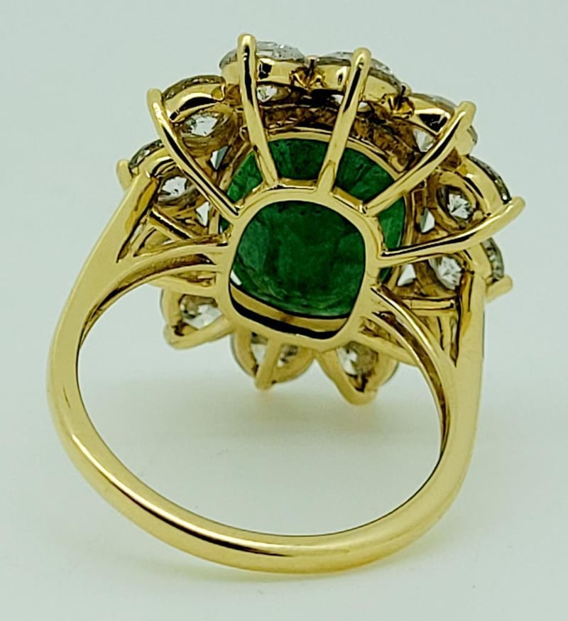 18CT YELLOW GOLD EMERALD AND DIAMOND RING