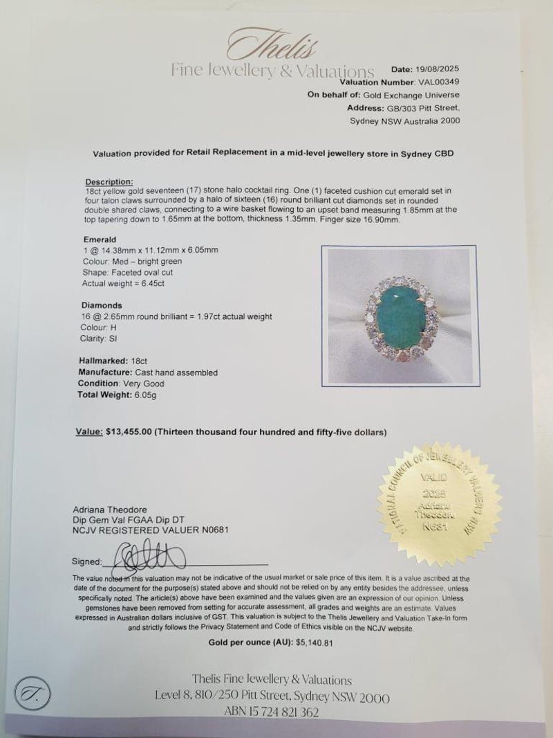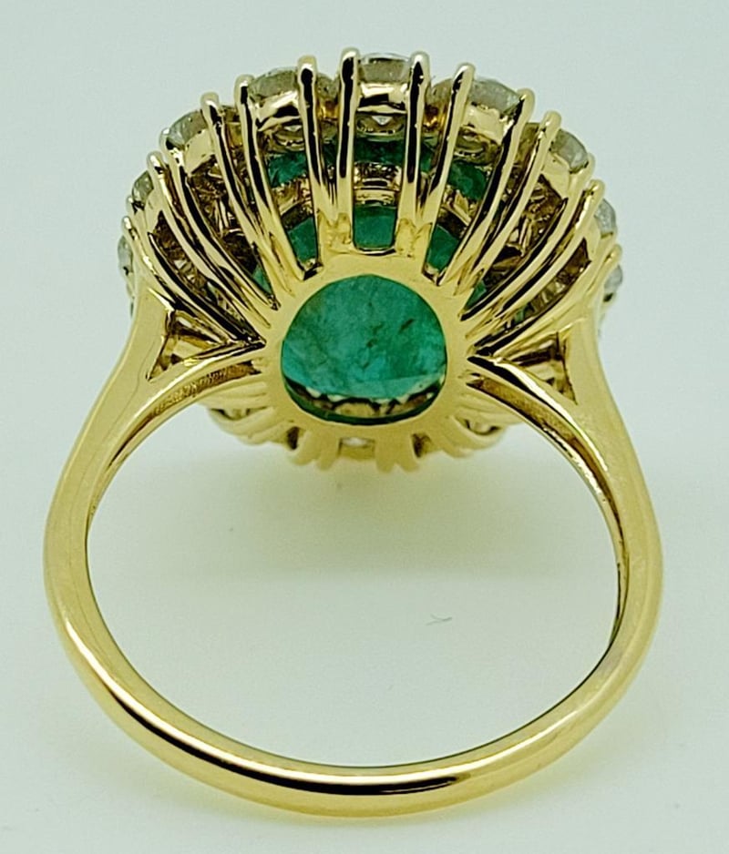 18CT YELLOW GOLD EMERALD AND DIAMOND RING