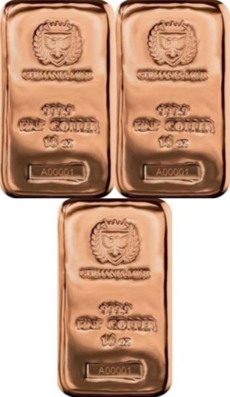 GERMANIA MINT -10-OZ CU 999.9 CAST BAR-INVESTMENT GRADE X 3 BARS 311158+7