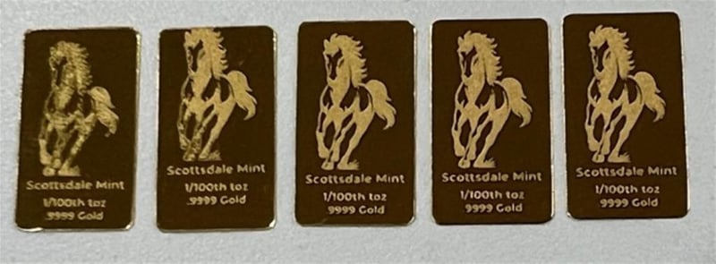 1/100 SCOTTDALE GOLD BAR X 5 311158+24