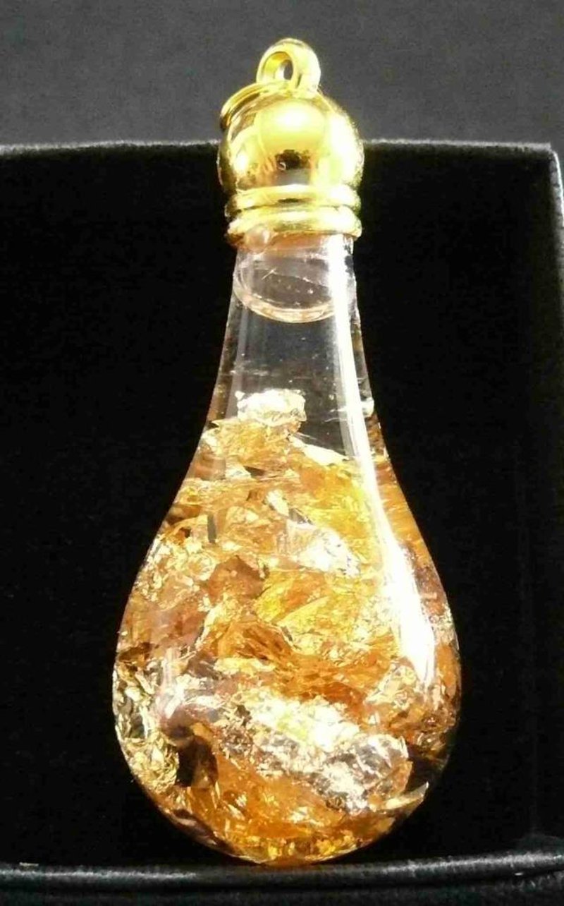 FLOATING 24CT. GOLD LEAF IN TEAR SHAPE GLASS PENDANT 60Mm(H). 488406+62
