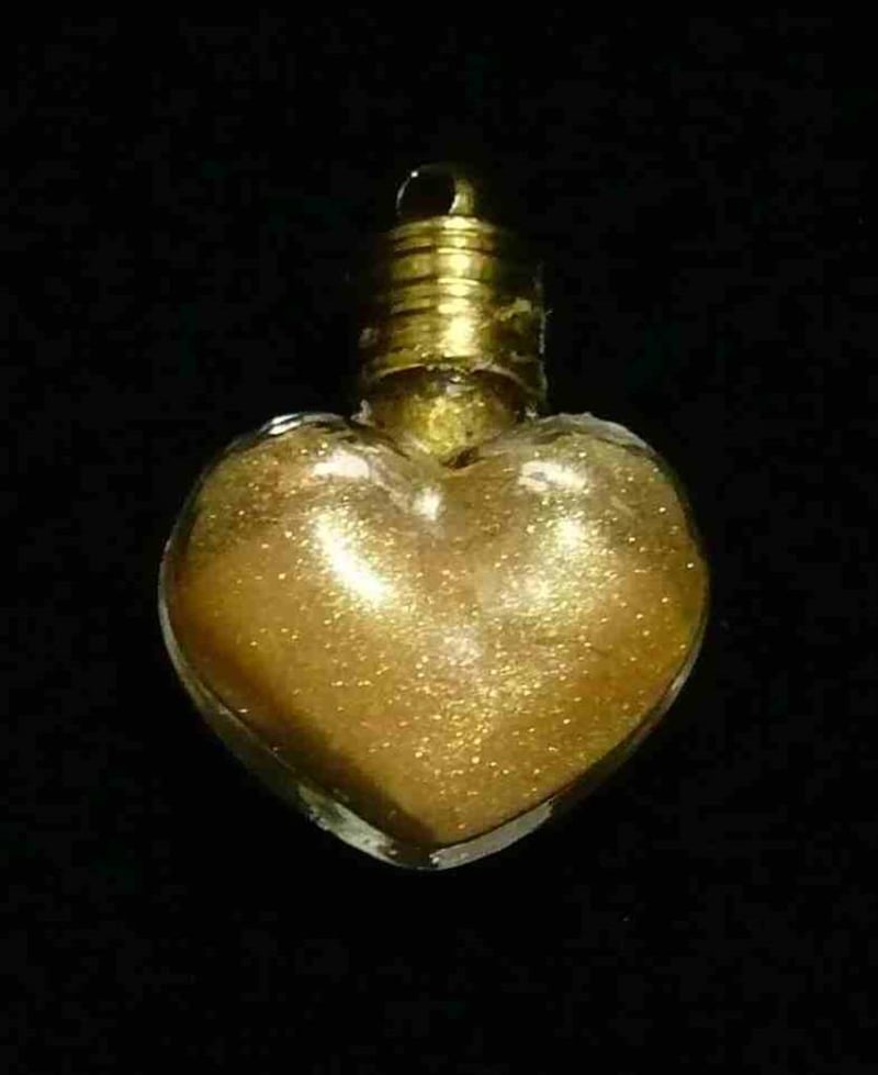 24CT. GOLD DUST IN HEART SHAPE GLASS PENDANT 30Mm(H). 488406+66