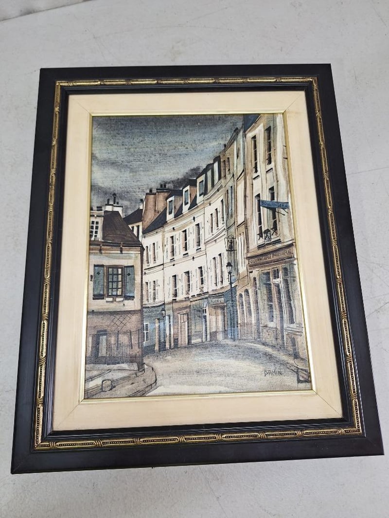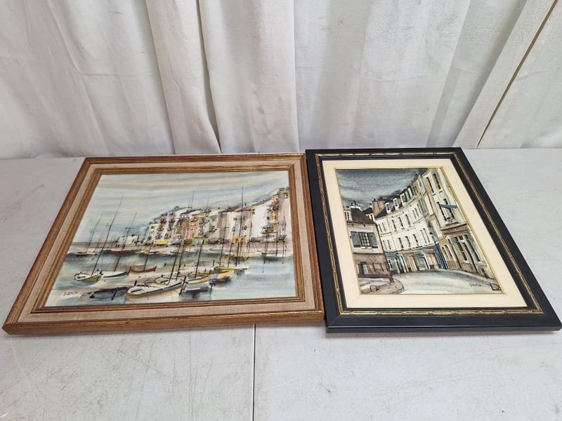 2 x DAMIN Arcylic on canvas paintings, 1 x water scene measures H:40 x W:48, 1 x French quarters measures H:45 x W:36cm with wooden frames