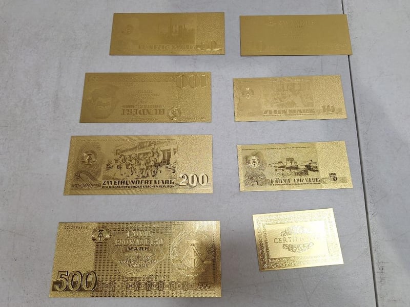 COLLECTABLES 7 x Gold banknote collection, 99.9% Gold with Authenticity certificate