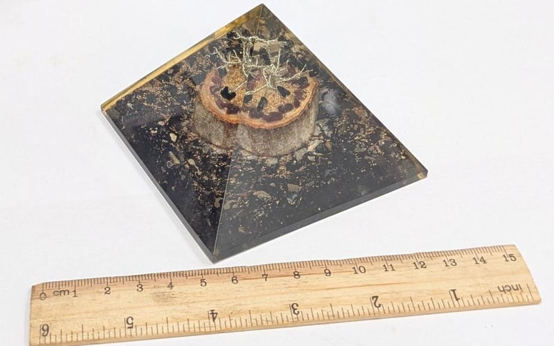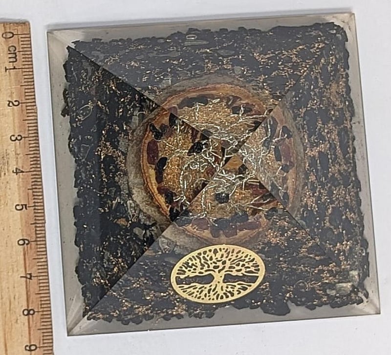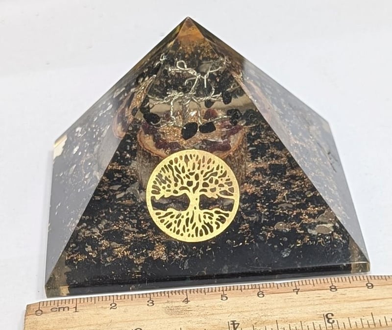 ORGONITE CRYSTAL HEALING PYRAMID WITH BLACK TOURMALINE GEMSWeighs 250 Grams Condition: Good - Refer To Images586333+13