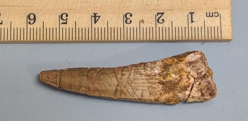 100 MILLION YEAR OLD SPINOSAURUS DINOSAUR TOOTH FOSSIL FROM MOROCCO The Species That This Dinosaur Tooth Is From Is Spinosaurus. Spinosaurus Is One Of The Most Well Known Dinosaurs And Had A "Sail" On Its Back. It Is Not Known What The “Sail” Was For, But Theories Include Heat Regulation, Buoyancy In Water And Display (Both For Fighting And For Mating Purposes). It Lived For Less Than Ten Million Years Around 90 To 100 Million Years Ago In What Is Now Northern Africa. Spinosaurus Fossils Are Found In Egypt And Morocco. It Was One Of The Largest Land Carnivores And Predators That Ever Lived. Spinosaurus Was Both A Terrestrial And Marine Predator And Fish Was A Large Part Of Its Diet. In The Jurassic Park Films, Spinosaurus Is Often One Of The Feared Dinosaurs. Note That There Is A Repair On This Tooth. This Is Common And Most Spinosaurus Teeth Have Repairs Because The Tooth Is Much Softer Than The Surrounding Matrix And Is Very Difficult To Cut Out.Condition: Good - Refer To Images586333+19