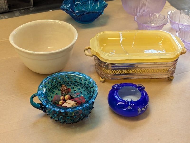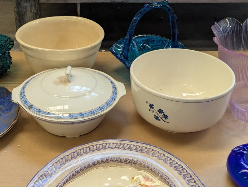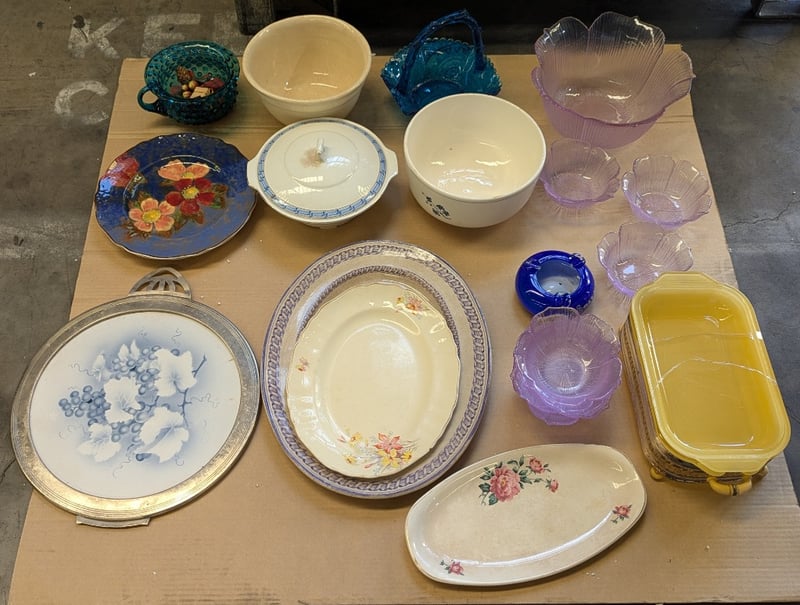 Items Include Glass Floral Style Bowls, Serving Dishes And Bowls, Plates
