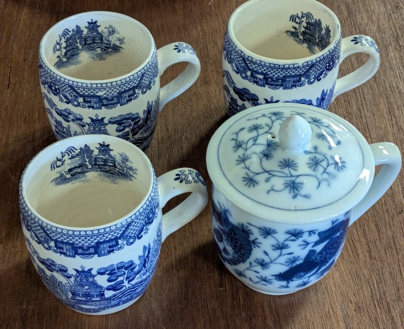 Includes Eight Plate Set Of Woods And Sons And Ironstone, Porcelain Mugs, Six Glass Bowls, Three Various Serving Bowls, Etc