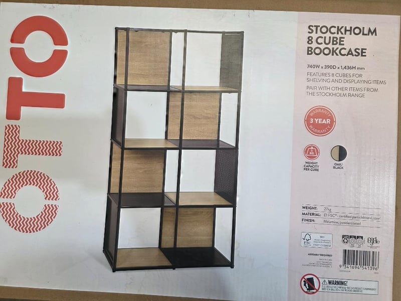 RRP $143.00 Stockholm 8 Cube Bookcase Oak and Black