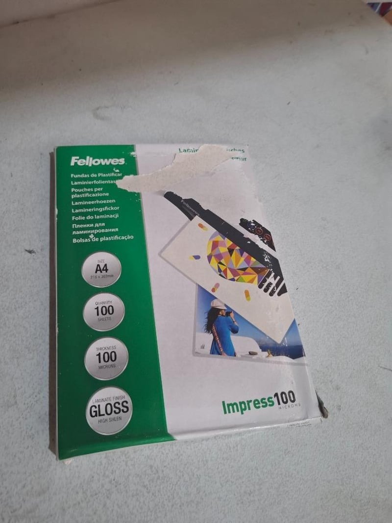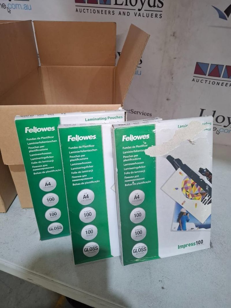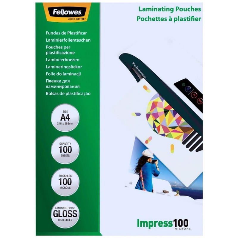 RRP $36.00ea Fellowes A4 100 Micron Laminating Pouch Gloss 100 Pack Note: Damage box