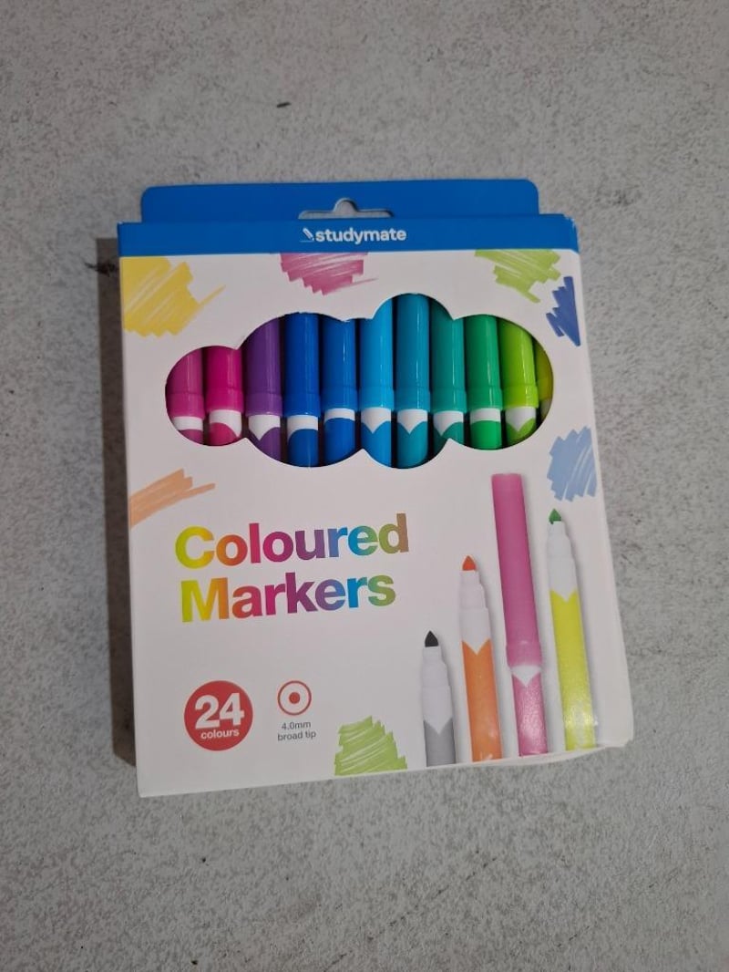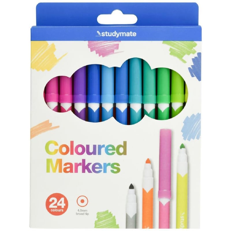 RRP $6.00 Studymate Coloured Markers 24 Pack (Box Of 24 Pcs) Note: Damage box