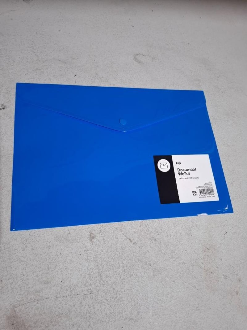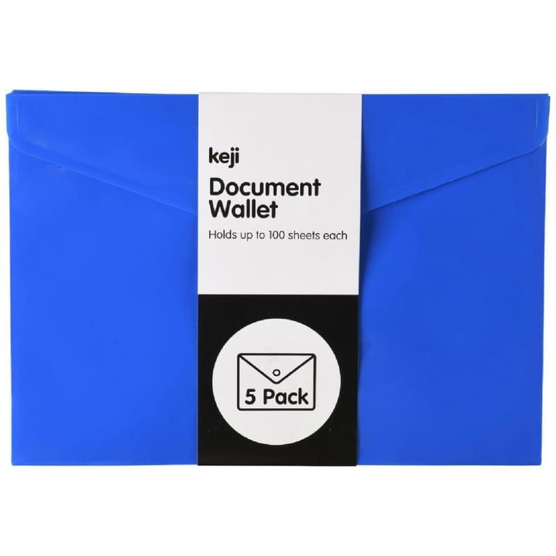 RRP $4.95 Keji A4 Button Document Wallet Blue (Box Of 60 Pcs, Per Pack Of 5)
