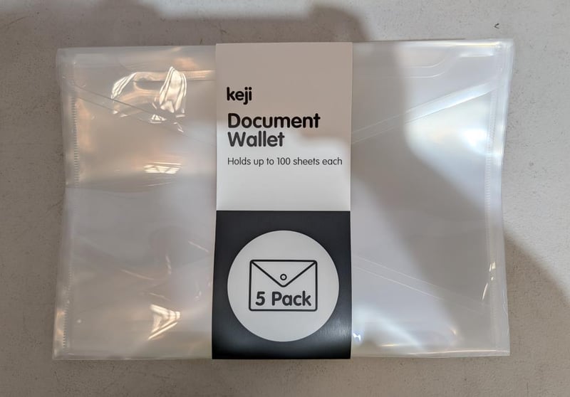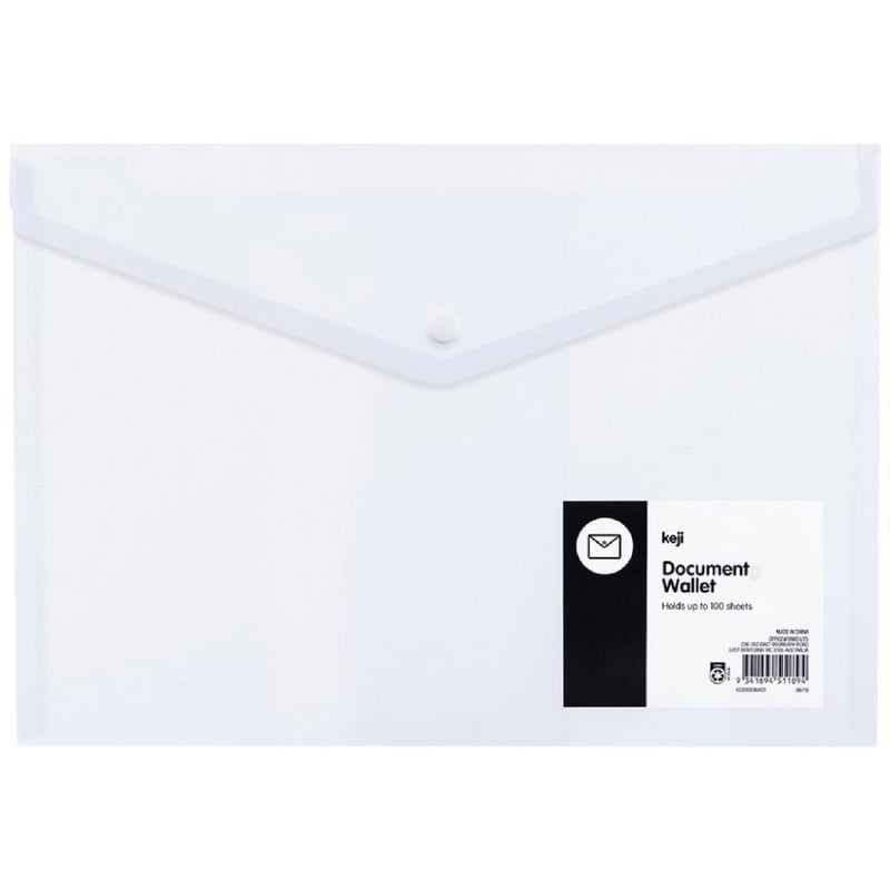 RRP $1.75 Keji Document Wallet A4 Button Closure Clear 5 Pack