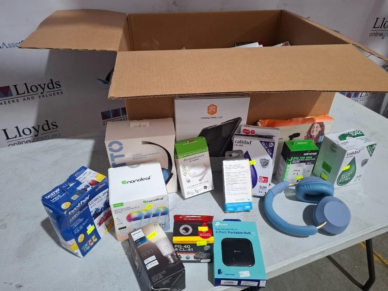 Assorted Items Including Dux Plus iPad Pro 11 Case, Wifi Smart Bulbs A60, Otto Wireless Active Noise Cancelling Head, Super Speed USB 3.0 4 Port Portable Hub And MoreNote: Items May Have Water Damage