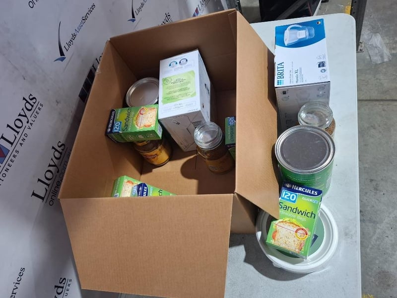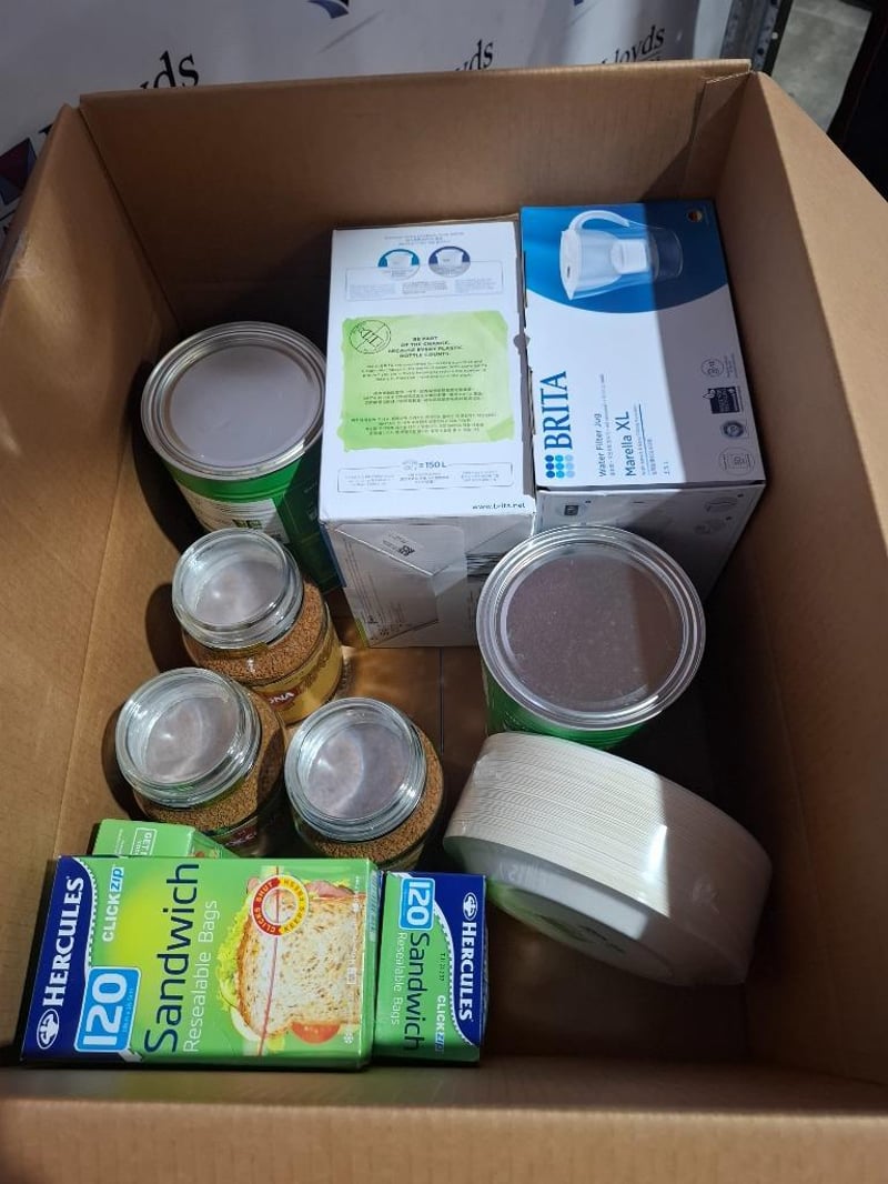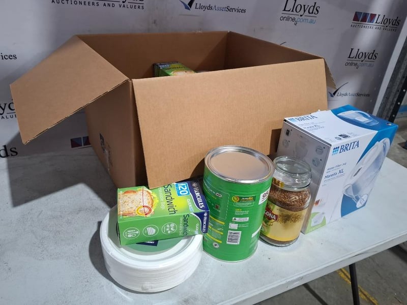 Assorted Items Including Moccona Clasic Medium Roast 400 G Coffee, Sandwich Bags, Water Filter Jug And MoreNote: Items May Have Water Damage