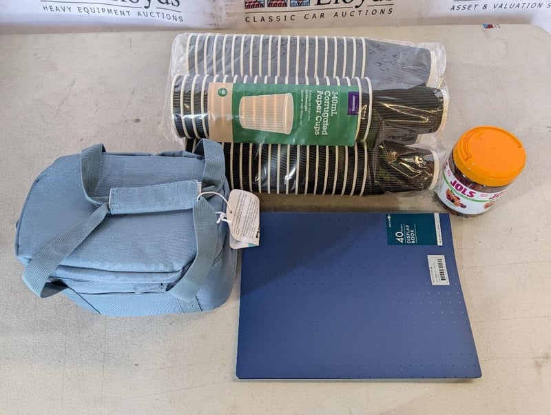 Assorted Items Including 340ml Corrugated Paper Cups, 40 Pocket Display Book, Insulated Lunch Bag And More Note: Items May Have Water Damage