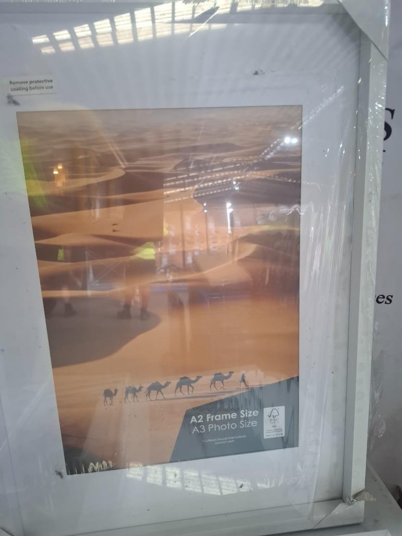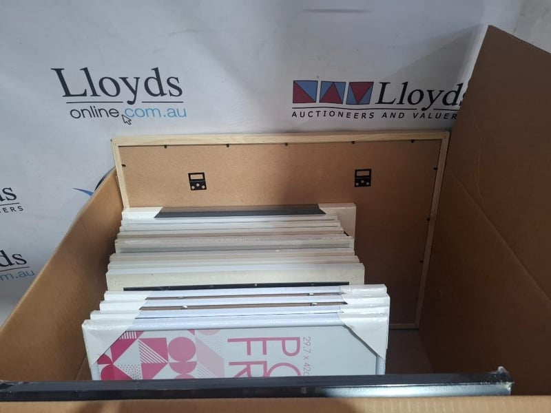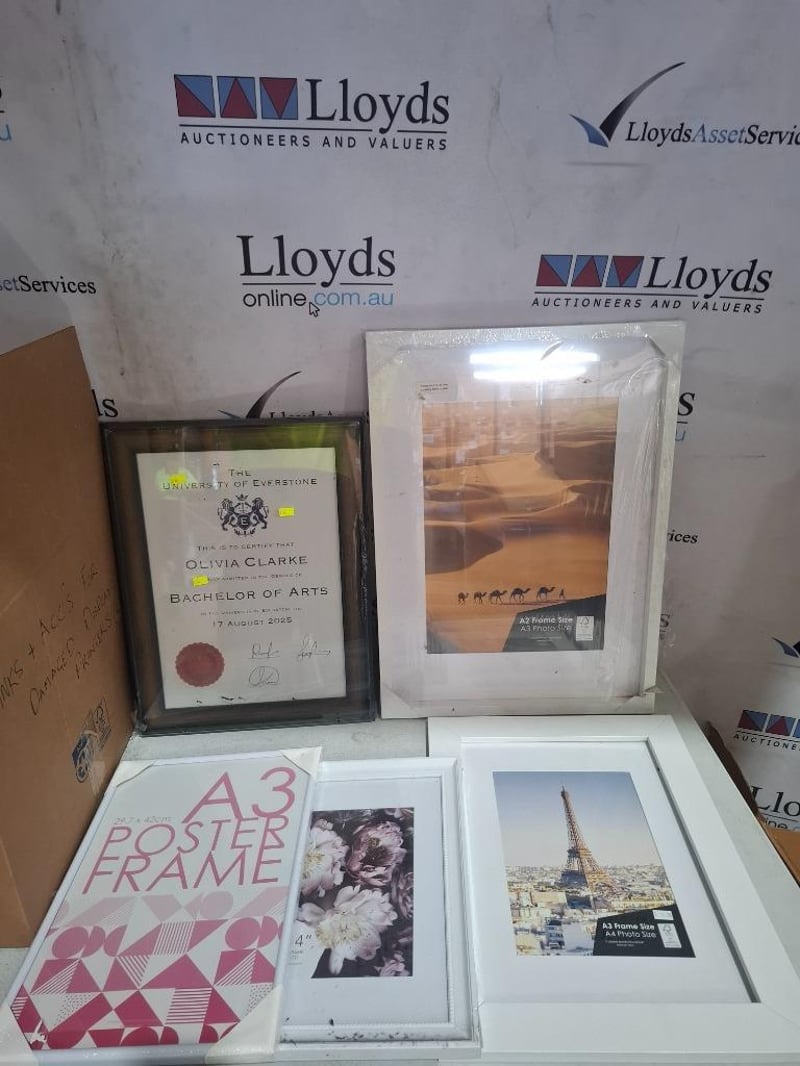 Assortment of Picture Frames5 x A3 Poster Frame2 x A3 Photo Size A2 Frame Size9 x 11 x14' Frames1 x A4 FrameNote: Items May Have Water DamageSold As Lot
