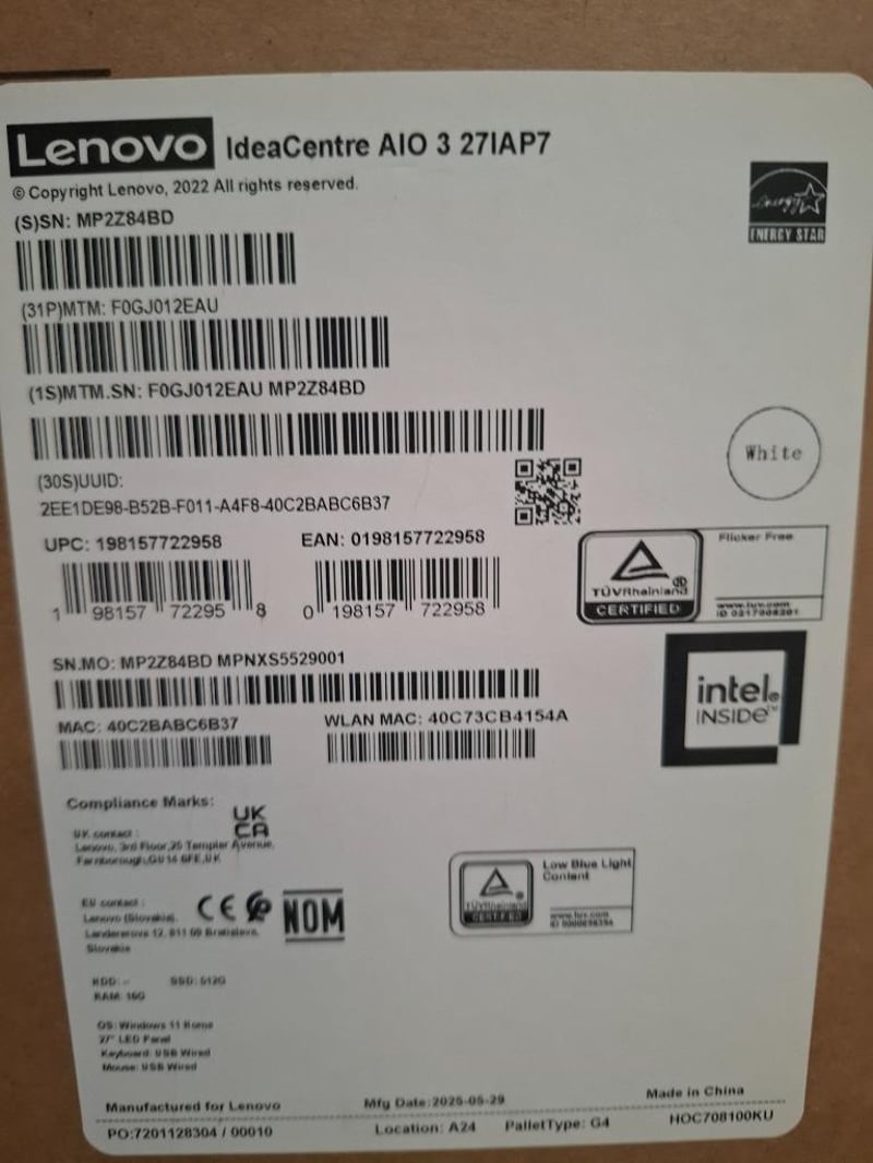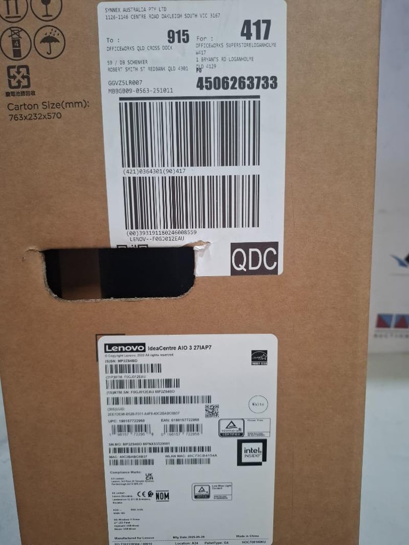 RRP $1,097.00 Lenovo 27' IdeaCentre Core i5 16/512GB AIO