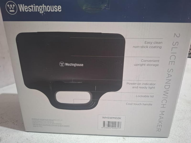 RRP $58.75 Westinghouse 2 Slice Sandwich Maker Black