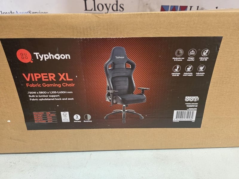 RRP $269.00 Typhoon Viper XL Gaming Chair Fabric Black