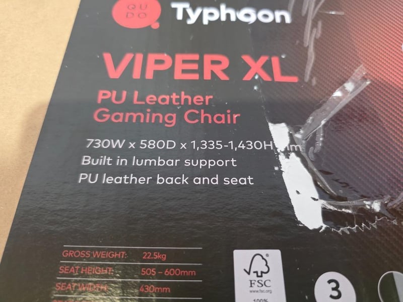 RRP $269.00 Typhoon Viper XL Gaming Chair PU Black