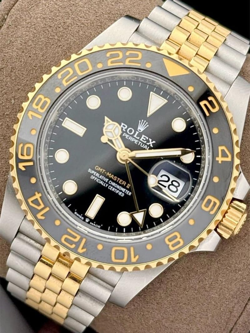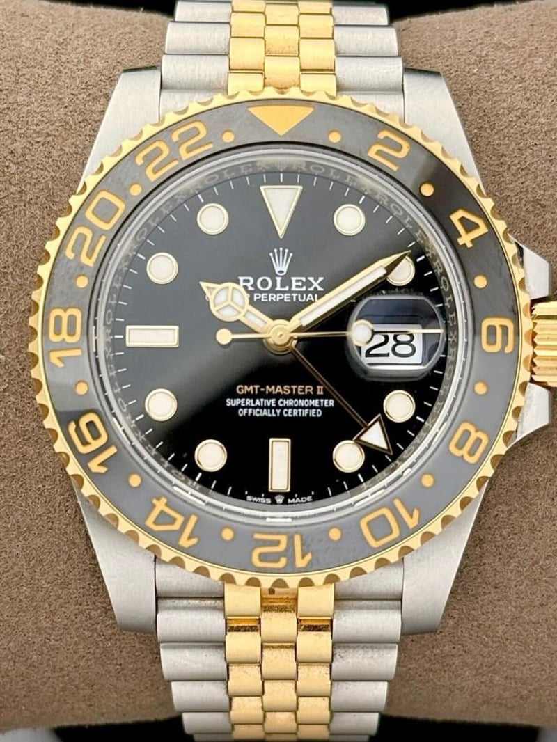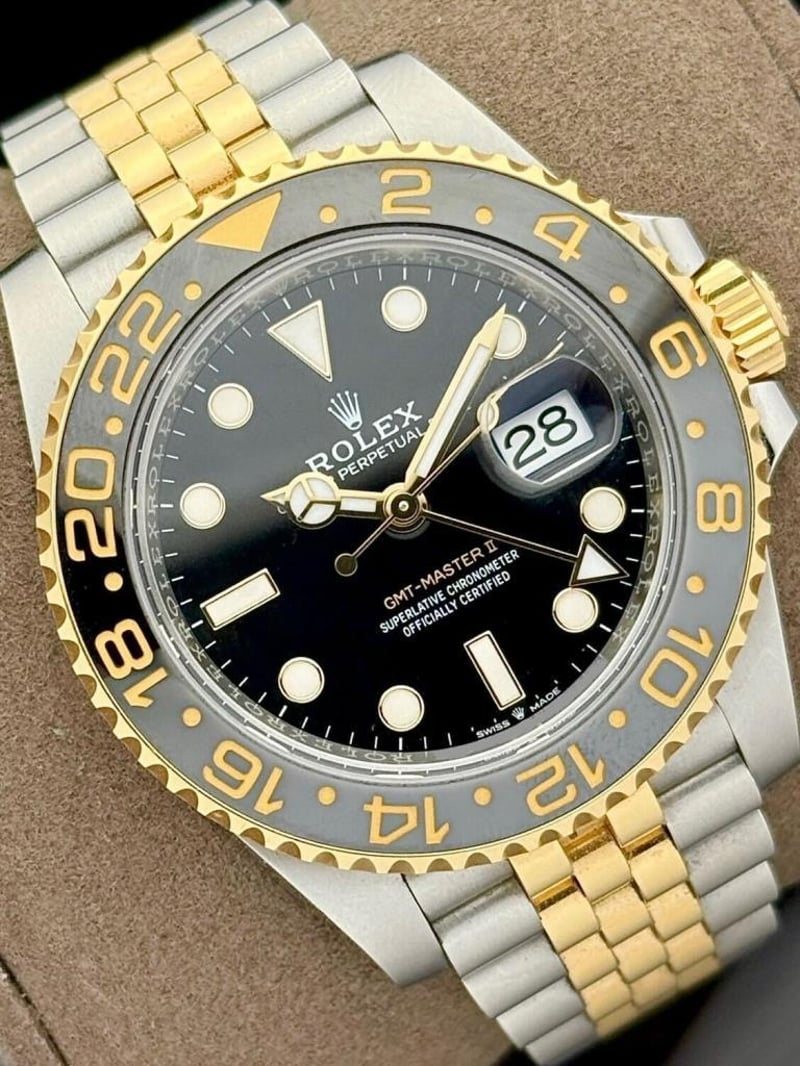 2024 ROLEX GMT-MASTER II ZOMBIE TWO-TONE JUBILEE 40MM Brand : RolexReference : 126713GrnrModel : Gmt-Master Ii ZombieYear : 2024Case Size : 40MmPower Reserve : 70HDial : BlackBezel : CeramicCase : Yellow Gold/SteelBracelet : Yellow Gold/SteelPapers : YesBox : Yes Condition: Good - Refer Images 0488417+9