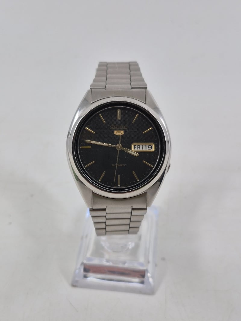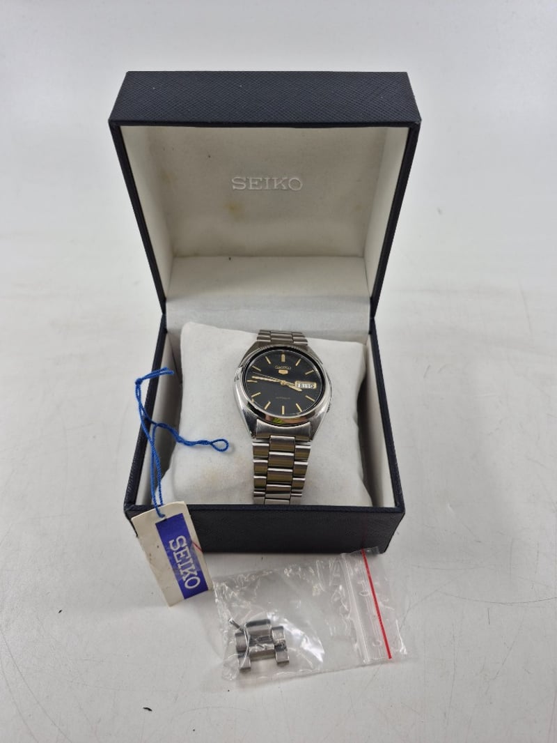 SEIKO SEKIO 5 CASE DESCRIPTION: STAINLESS STEEL BRACELET: STAINLESS STEEL MOVEMENT: AUTOMATIC BOX: INCLUDED PAPERS: NOT INCLUDED Condition: Good - Refer To Images VAULT 586319+2