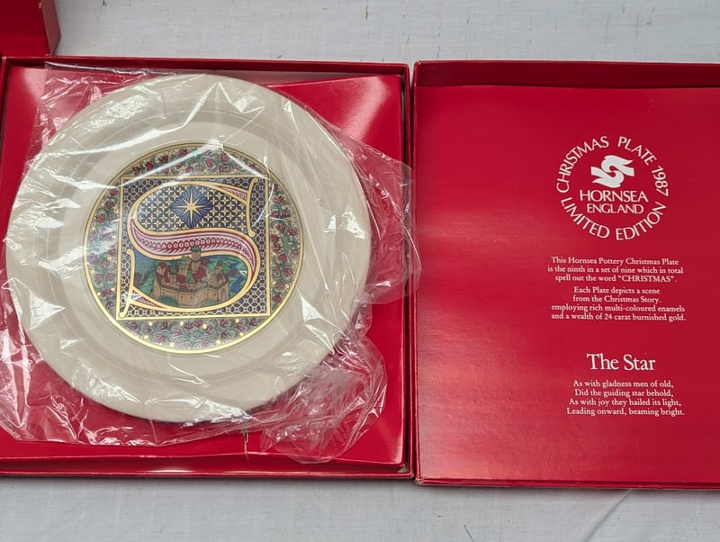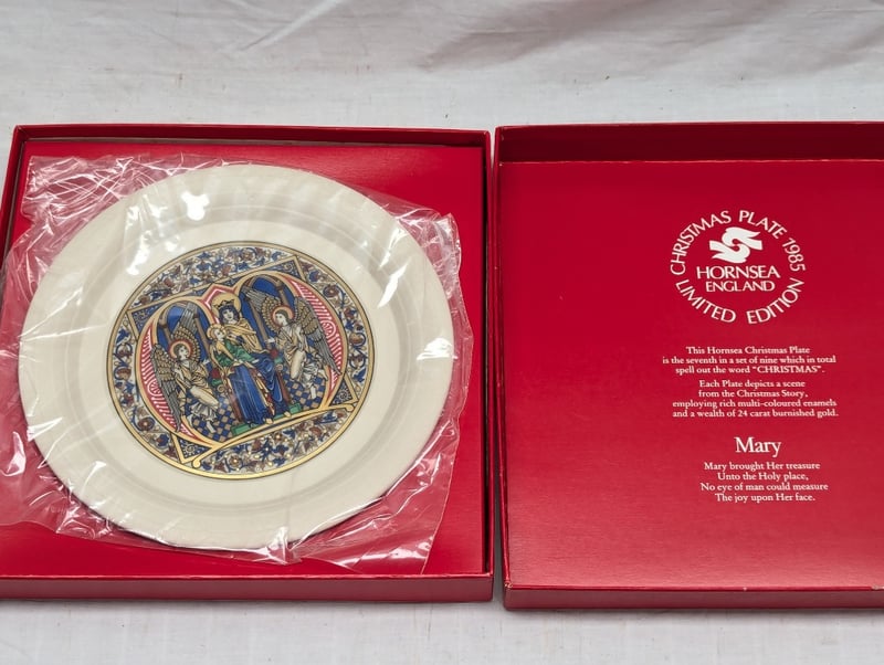 SIX HORNSEA LIMITED EDITION CHRISTMAS PLATES Plates Include: 1979 'Christmas', 1982 'No Room At The Inn', 1983 'The Sheperds' 1985 'Mary', 1986 'The Angel', 1987 'The Star', Plate Diameters Approx: 22Cm Includes Original Boxes Condition: Good - Refer To Images 11B 587775+1