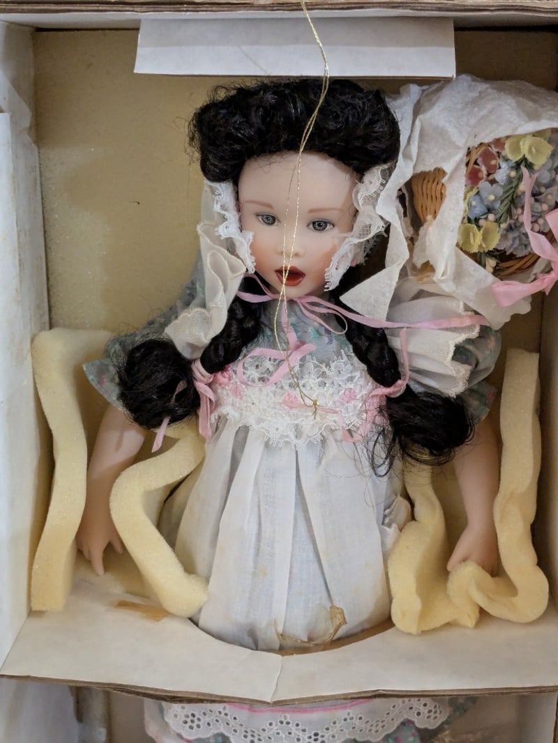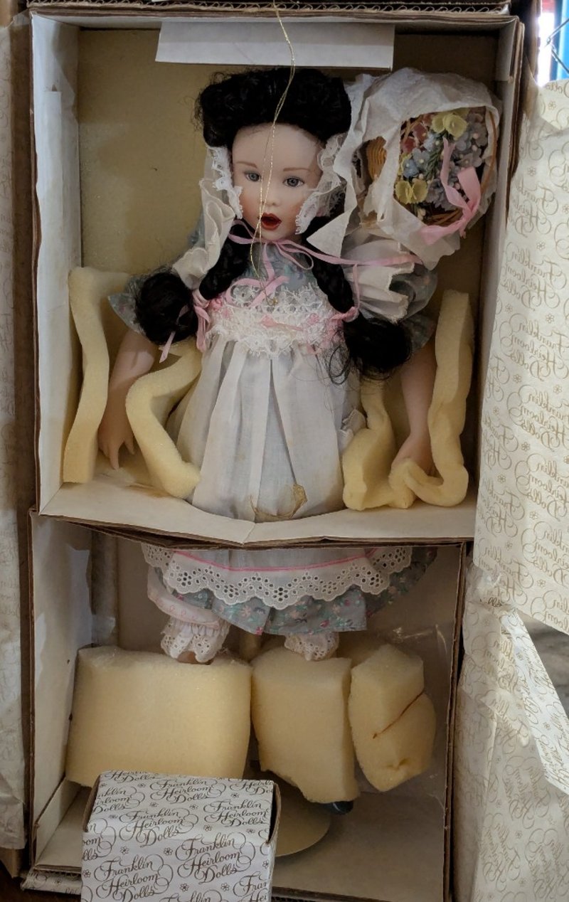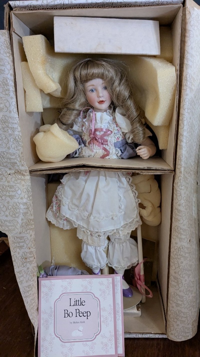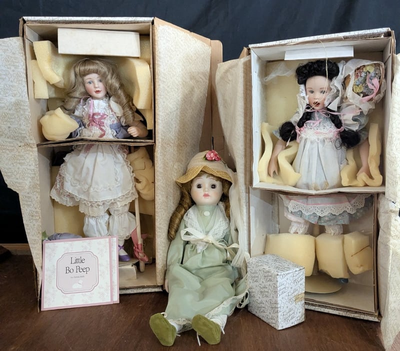 Includes Special Edition Little Bo Peep Franklin Heirloom Doll With Bonnet And Shepherds Crook, Franklin Heirloom Doll With Watering Can And Flower Basket, And Porcelain Doll With Straw Hat