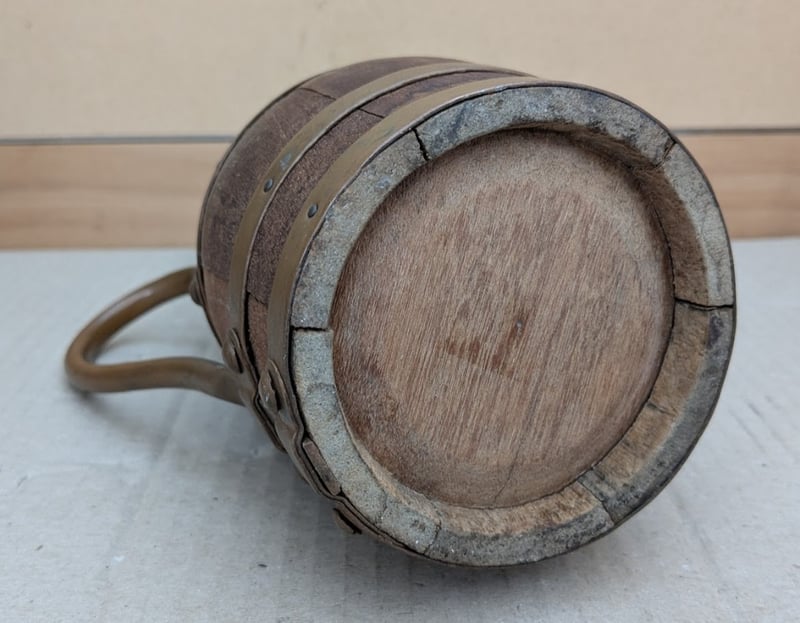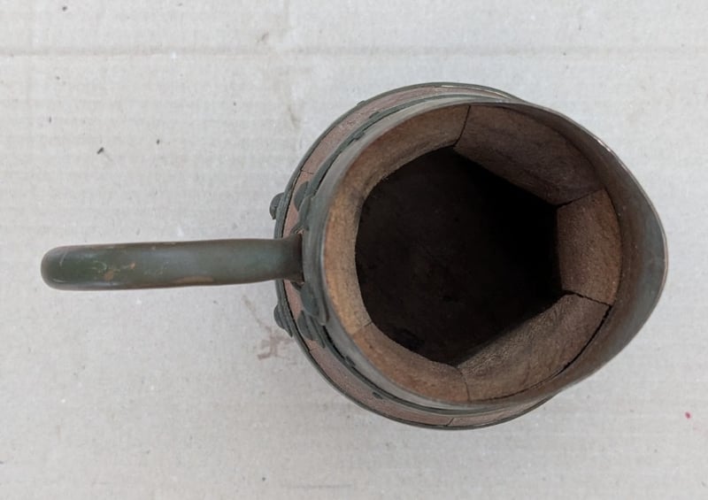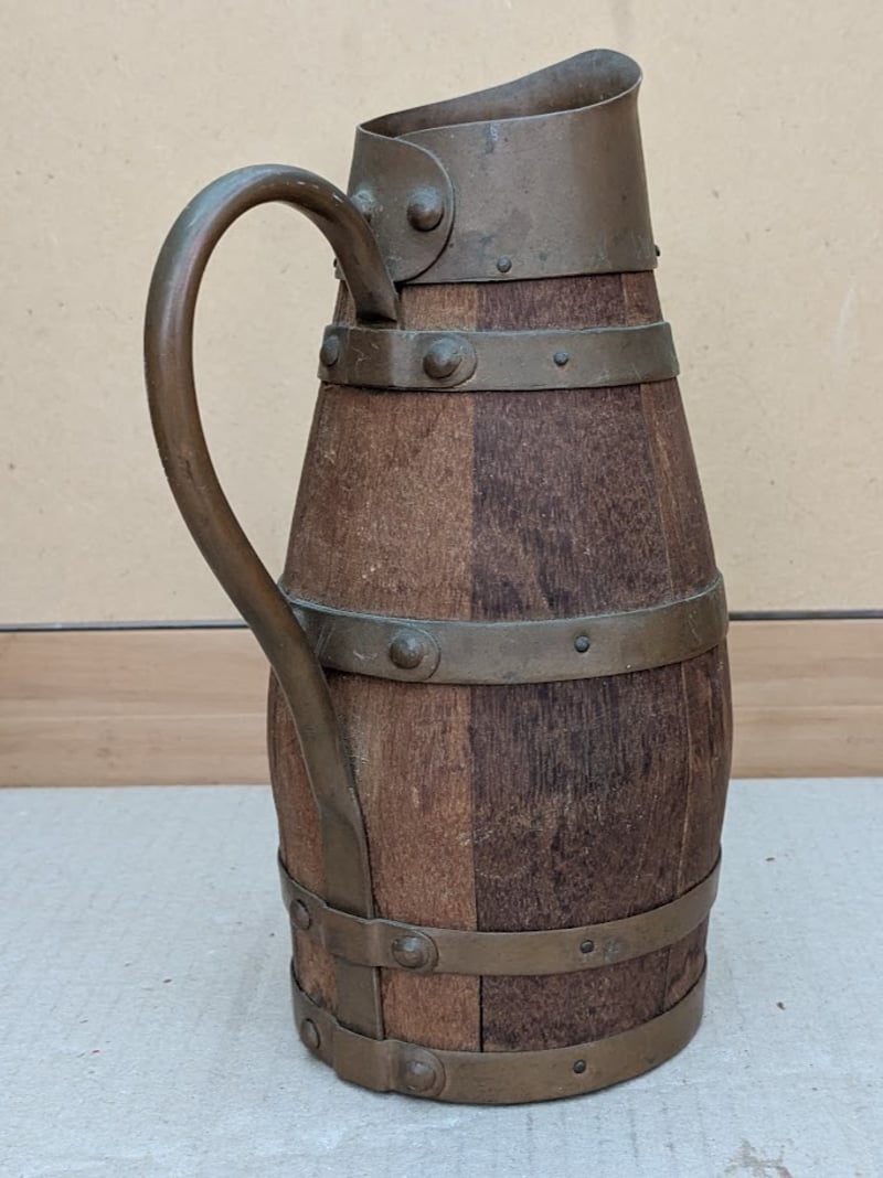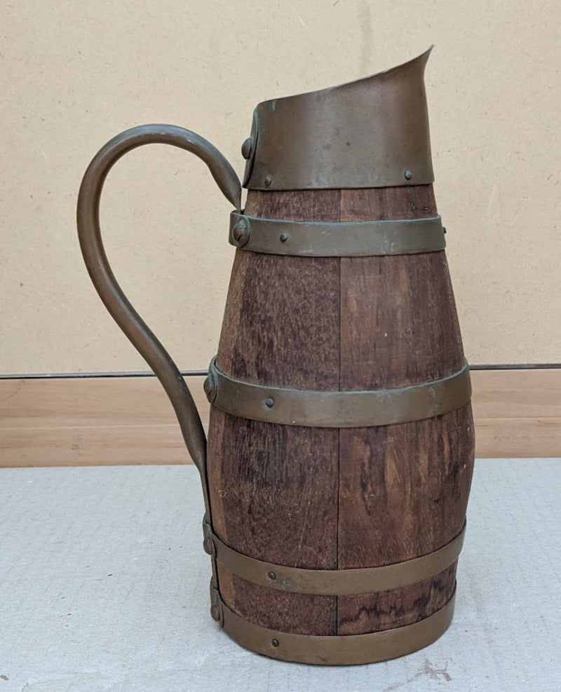 ANTIQUE WOODEN COPPER CLAD PITCHER - CARAFE 20CM TALL