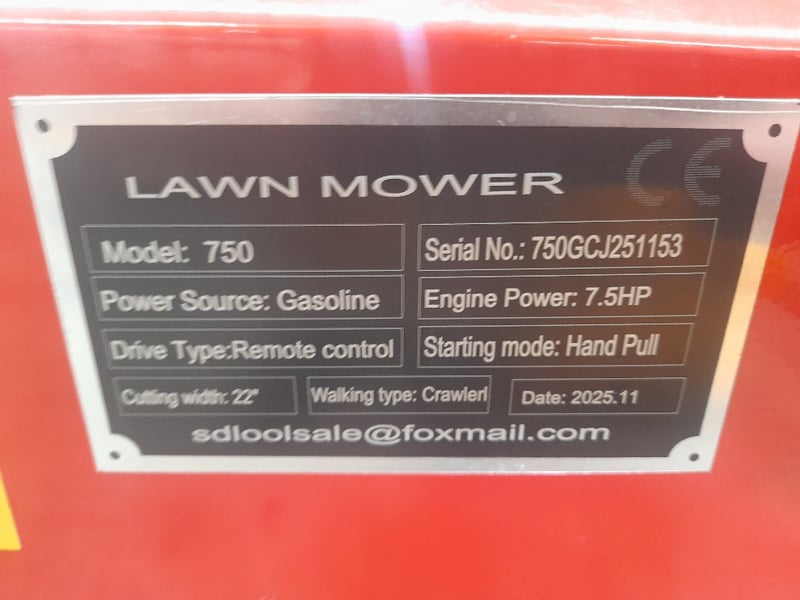 FACTORY DIRECT** 2025 Unused MMS MS750, Remote Lawn Mower - [Landscaping Equipment]remote control ,cutting width 550mm, blade can be liftWhole machine size: 930*860*580mmPacking size: 1060*960*810mmWhole machine weight: 130 kgCutting width: 550mmAdjustable height: 10-150mmCutting height: 20-150mmWalking speed: 0-6km/hWorking slope: 0-30'Minimum distance from the ground: 20mmWalking Way: Crawler walkingcontrol voltage: 12vEngine Brand: LONCIN(Optional brands Yamaha, Dajiang)Engine Power: 7.5hpEngine Type: Vertical axis four strokeS/N: 750GCJ251153Note: OEM images and VIDEOS shown are for illustration purposes only, and used as a guide only, inspections highly recommended.For more information Contact King Cheung on 0477987576 or [email protected]