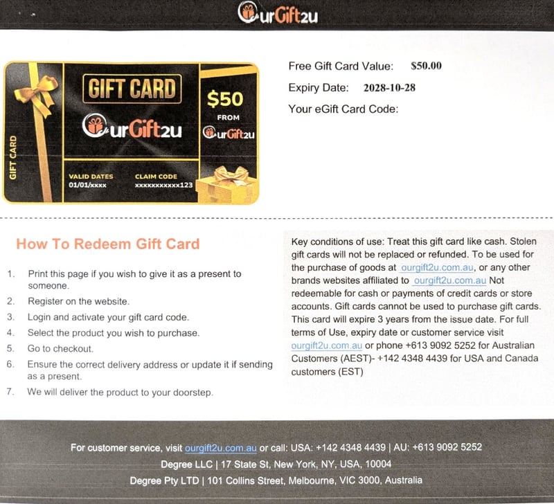 Accompanied By Insurance Valuation Assessment And $50 Ourgift2U Gift Card.