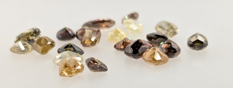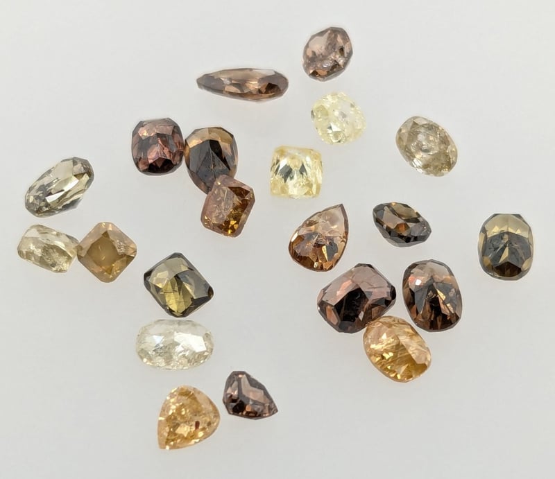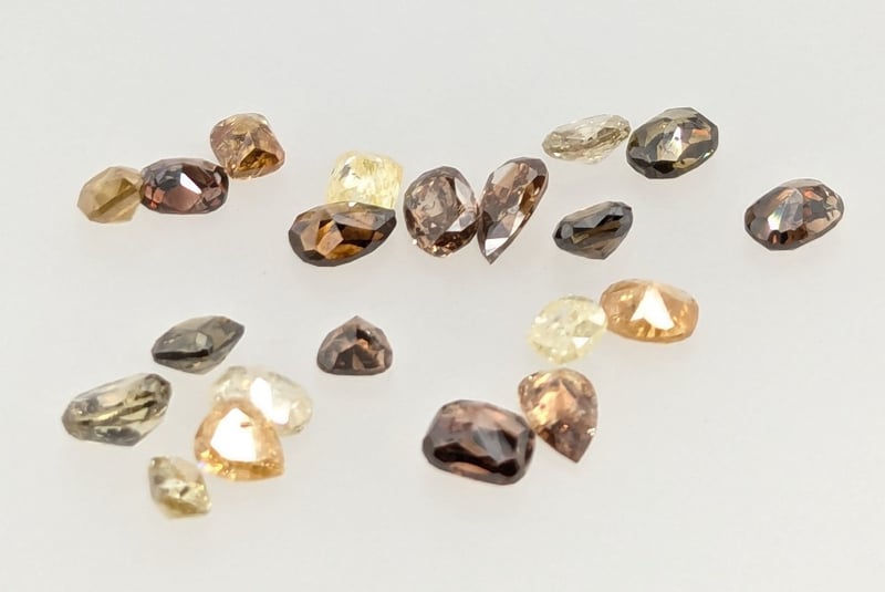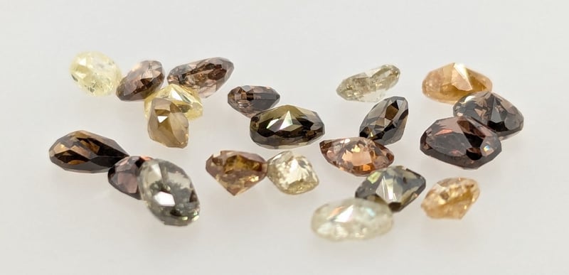 Cut: Cushion, Pear Brilliant, Oval Brilliant. Clarity: Si1-P2. Colour: Champagne, Fancy Yellow, Fancy Green, Fancy Brown.