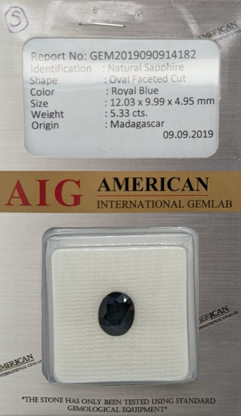 Cut: Oval Faceted. Colour: Royal Blue. Origin: Madagascar.