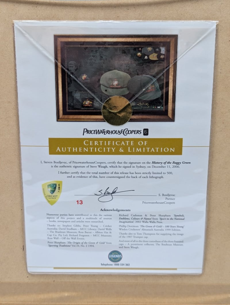 LIMITED EDITION STEVE WAUGH SIGNED 'HISTORY OF THE BAGGY GREEN'