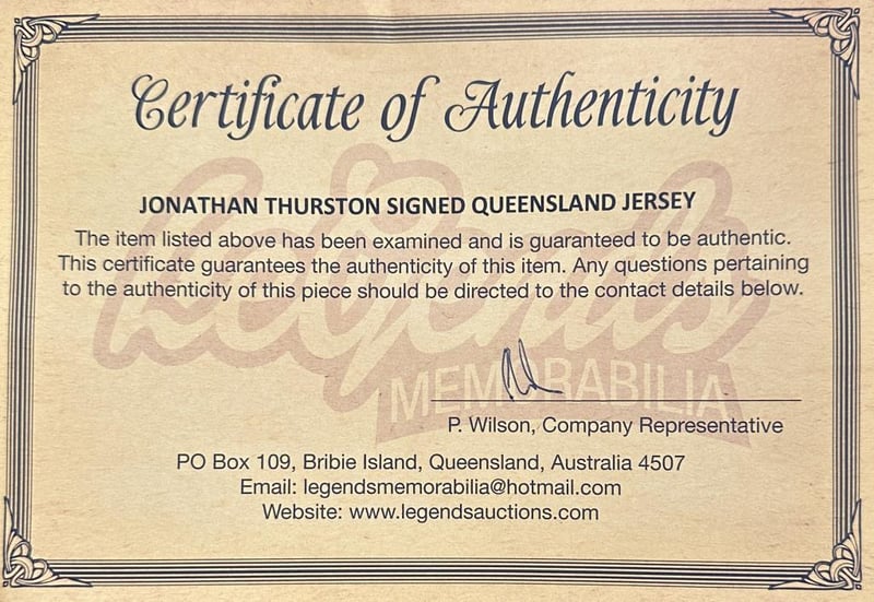 A Queensland Maroons Jersey Personally Signed By Johnathan Thurston. Nathan Cleary Is An Australian Professional Rugby League Footballer Who Co-Captains And Plays As A Halfback For The Penrith Panthers In The Nrl. The Item Is Accompanied By A Certificate Of Authenticity.