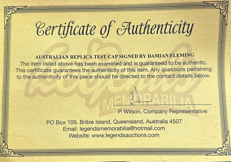 An Australian Replica Test Cap Personally Signed By Damien Fleming. Damien Fleming Is An Australian Cricket Commentator And Former Cricketer Who Played For The Australian National Cricket Team And Domestic Cricket For Victoria. The Item Is Accompanied By A
