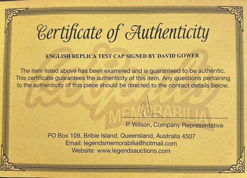 An English Replica Test Cap Personally Signed By David Gower. David Gower Is An English Cricket Commentator And Former Cricketer Who Was Captain Of The England Cricket Team During The 1980S. The Item Is Accompanied By A Certificate Of Authenticity.