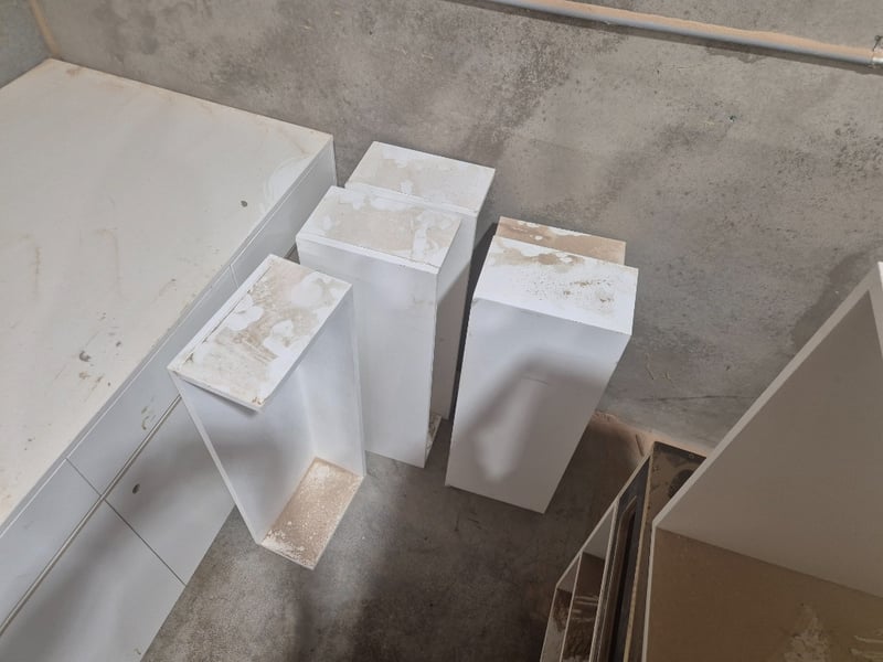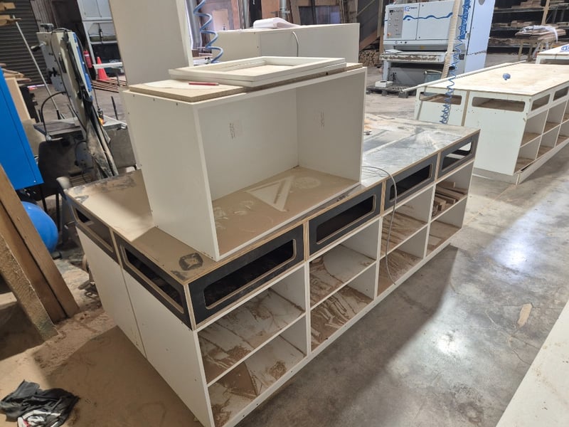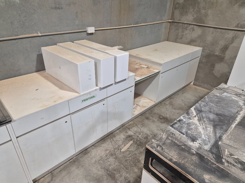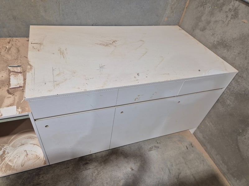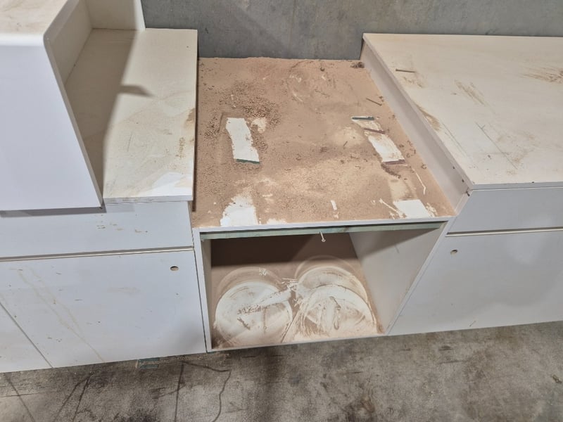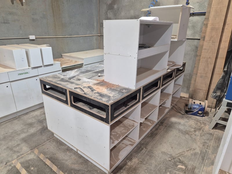 Island Bench2450x1220x9502x 3 Cupboards Cubbie BenchAssorted Unfinished Drawers & shelvingSold as Lot