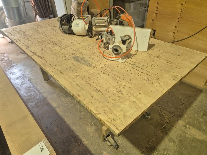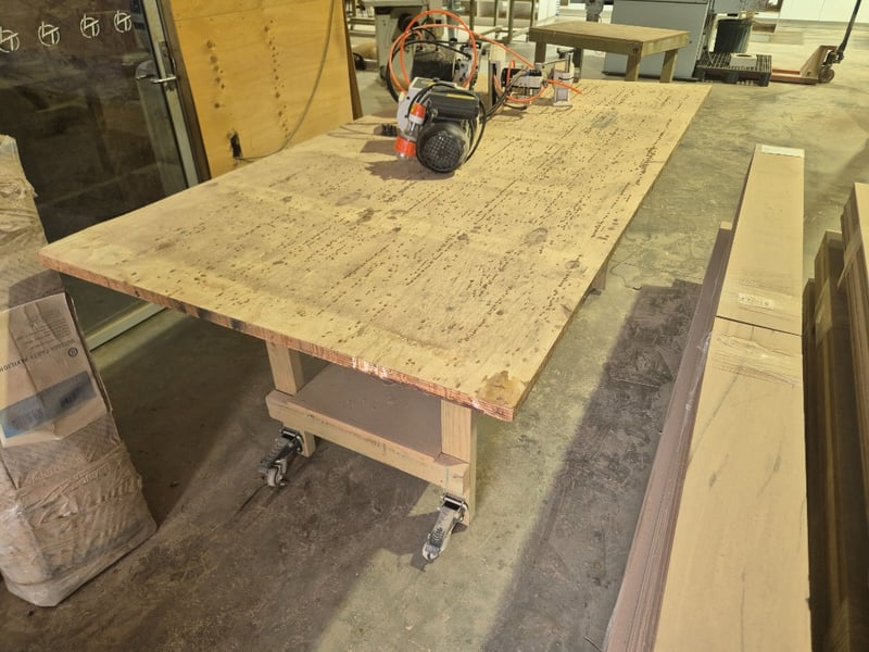 Large Timber Workbench w/dolley wheels 2400x1200x900 Note: Machine on table NOT INCLUDED