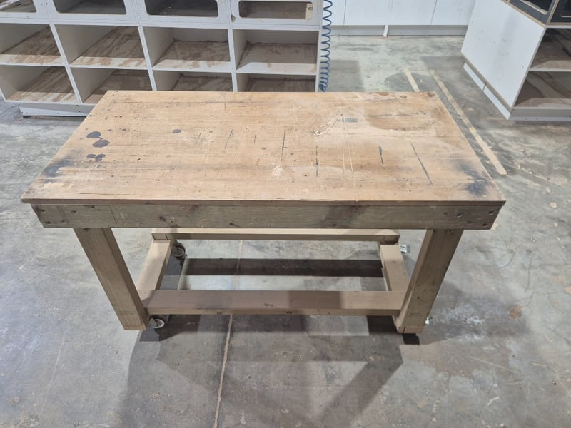 Medium Timber Workbench w/dolley wheels 1100x700x820mm