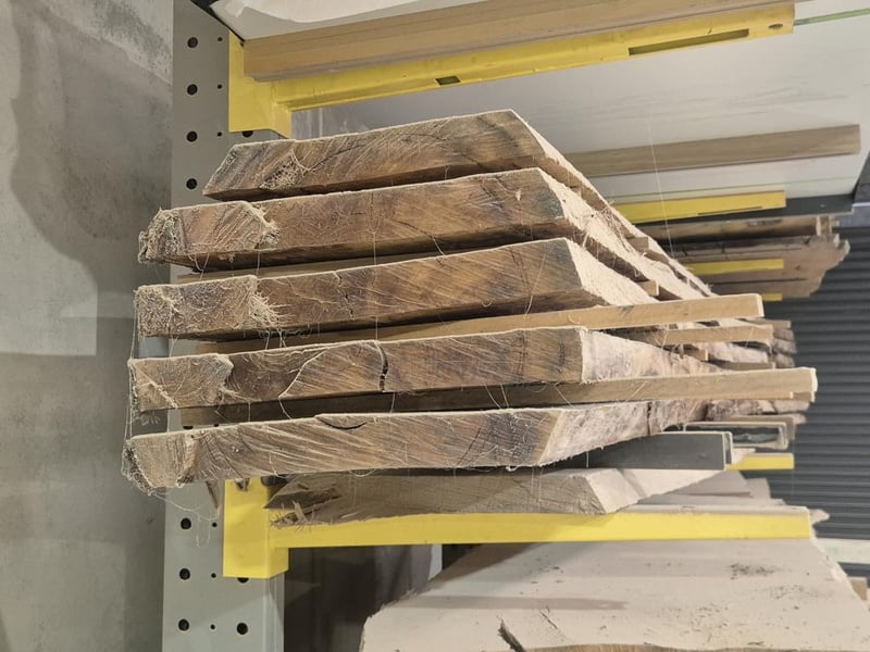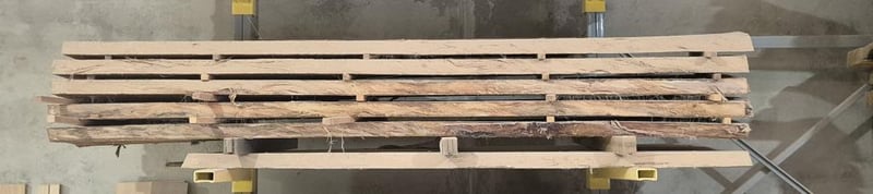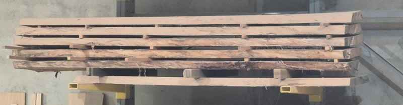 Blackbutt Timber Qty: 6, Large Timber Benchtops Approx Dimensions: 2950x600x70 NO FORKLIFT ONSITE. REMOVAL IS BUYERS RESPONSIBILITY
