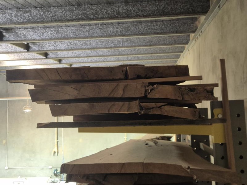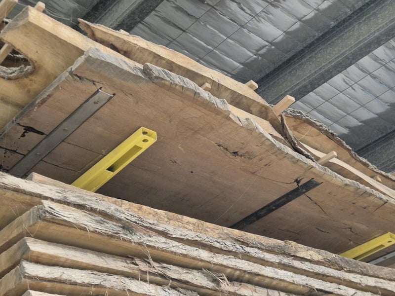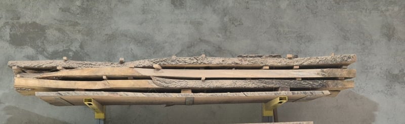 English Oak Timber, Qty: 4, English Oak Large Timber Benchtops/Timber Cuts, w/Natural Sides Approx Dimensions: 3310x990x45mm Sold as Lot NO FORKLIFT ONSITE. REMOVAL IS BUYERS RESPONSIBILITY